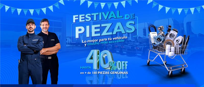 21 de octubre de 2025. IVECO, marca perteneciente a Iveco Group, presenta el “Festival de Piezas”, una campaña nacional que busca acercar a los transportistas la mejor calidad en repuestos genuinos con descuentos de hasta el 40%. Con esta acción, la marca refuerza su compromiso con la posventa, brindando soluciones accesibles y de calidad para mantener cada camión en movimiento. La promoción estará disponible en todos los concesionarios oficiales del país hasta el 15 de diciembre, o hasta agotar stock.