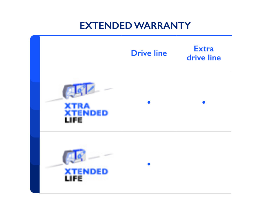 IVECO pakub laiendatud garantii teenust, mis hõlmab elemente Driveline, Driveline Plus ja Full Repair, mida saate valida moodulitena vastavalt oma isiklikele vajadustele..