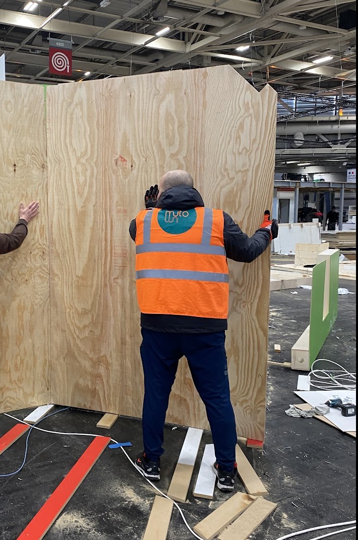 Muto event est une Société à Mission et un service clé en main dédié au réemploi des aménagements événementiels. Dans le cadre de cet accompagnement, muto event a d'abord réalisé un inventaire des matériaux consommables utilisés pour réaliser le stand. Puis, identifié des associations et entreprises locales de l'Economie Sociale et Solidaire, qui pourraient être intéressées par ces gisements. Pendant le démontage, la société sera présente sur site pour déposer, trier, et reconditionner les matériaux. Le calcul précis de l’équivalent CO2 sera réalisé 7 jours après le démontage du stand. La liste définitive des bénéficiaires et la réutilisation finale des matériaux récupérés seront connus 30 jours après le démontage du stand.