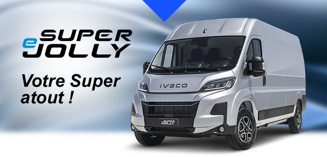 (3) Pour toute commande d’un eSuperJolly avant le 31 mars et une immatriculation avant le 30 juin 2026, le contrat d’entretien IVECO 3XL (hors pneumatique) est offert pendant 4 ans et la garantie du véhicule pendant 5 ans. Voir conditions chez votre concessionnaire IVECO participant.